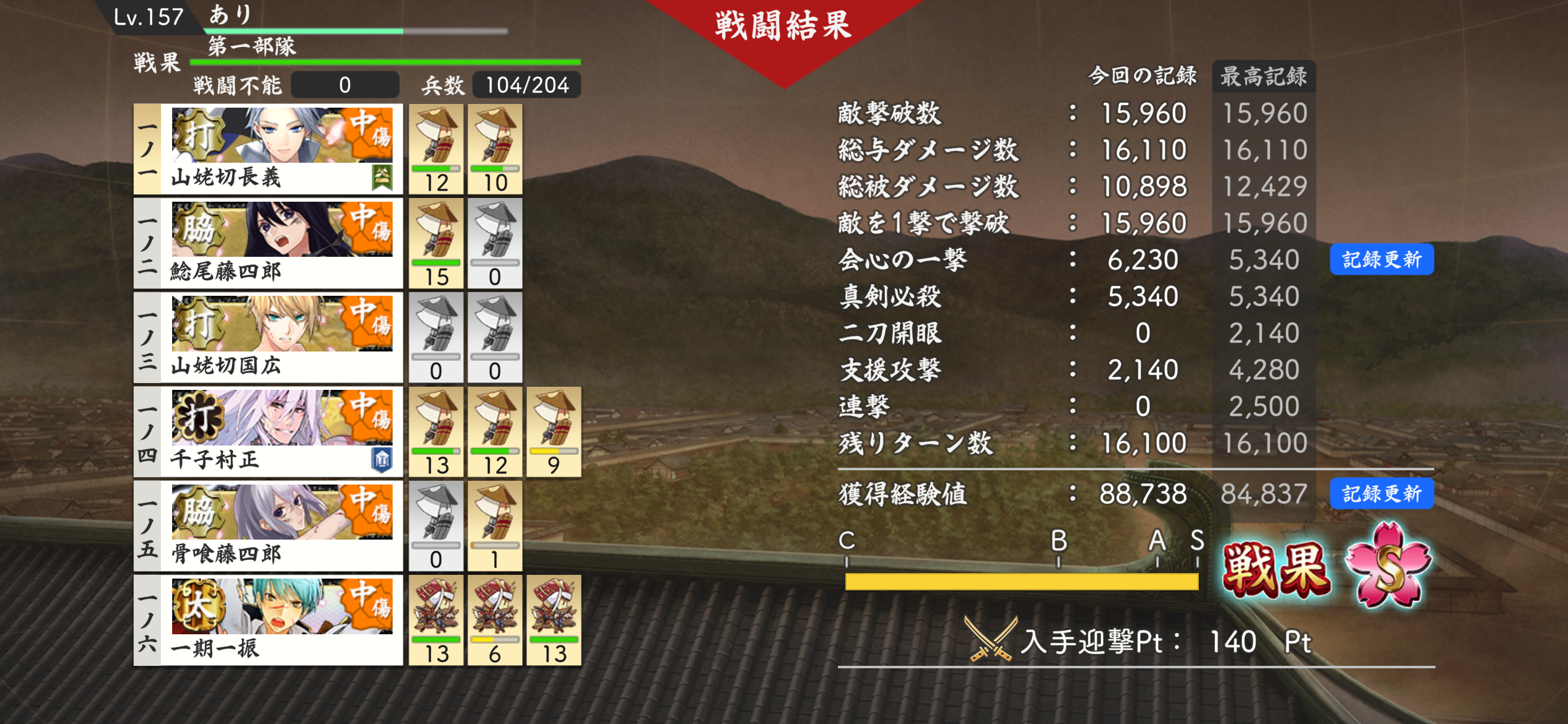 初めて中傷進軍というものをやっている めちゃくちゃ真剣必殺が出る 国広くんの真剣必殺に長義くんが続いたかと思えば鯰尾くんの真剣必殺に骨喰センパイがついていく時もあってなかなかエモい #とうらぶ