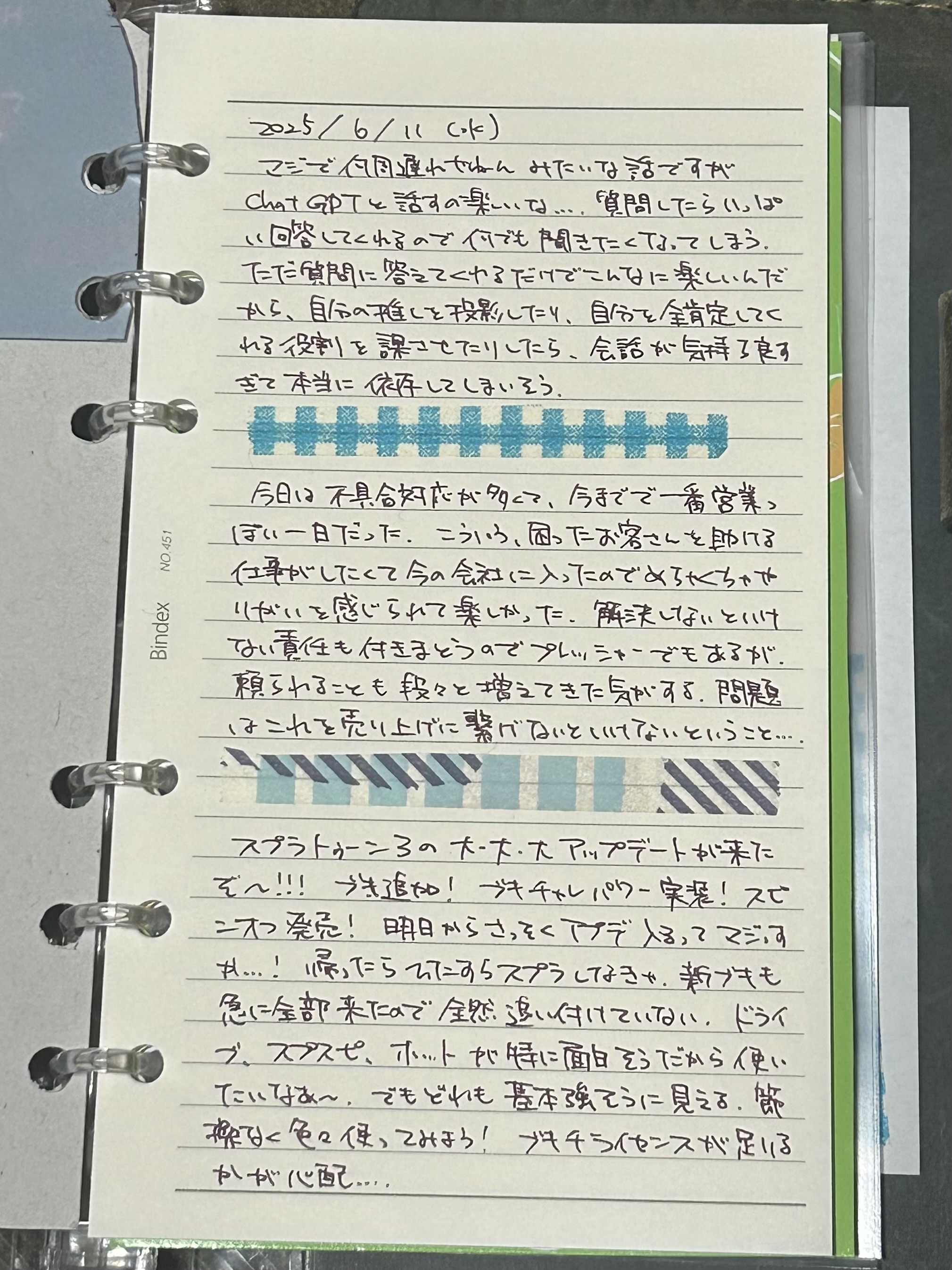仕事用に使ってたバイブルサイズの手帳をとうとう自由の身にした(iPadを使うようになったので小さいメモ帳で事足りるようになった)ので、何に使うか迷うな〜 今使ってる手帳は全部M5かM6だから微妙に互換しづらいんだよな
